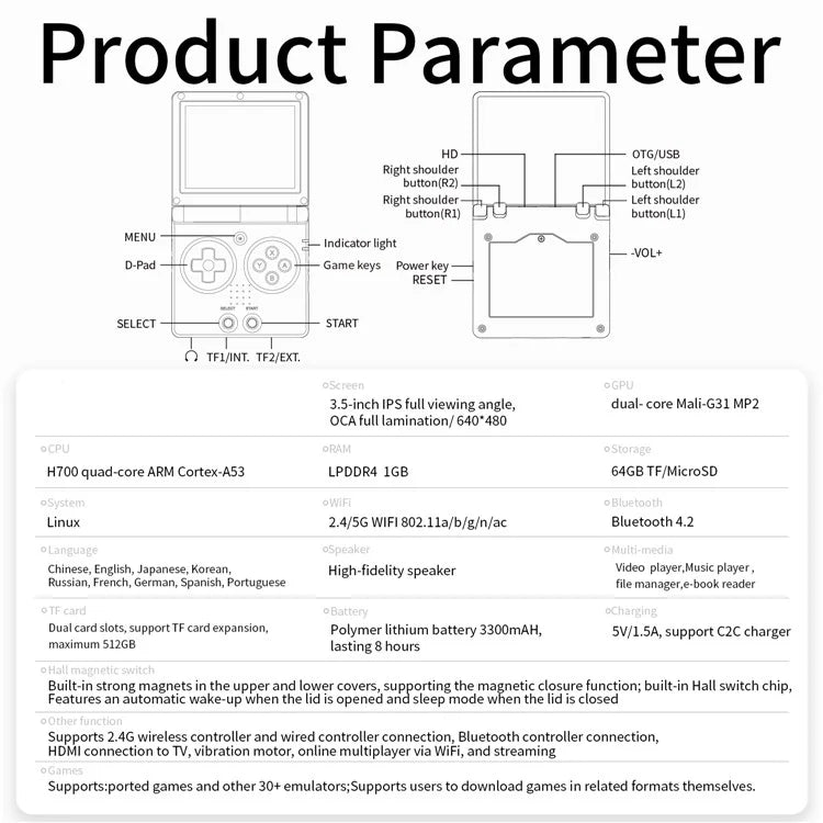 RG35XXSP Retro Flip Handheld Game Console 64GB Video Game Player - Argento
