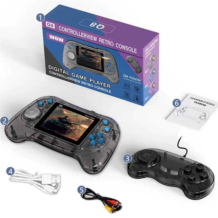 Q8 Retro Game Console con Controller Portatile Incorporato 800 Giochi per 2 Giocatori - Grigio Trasparente
